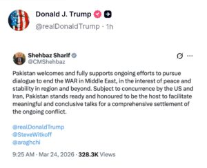 इस पोस्ट में पाकिस्तान के प्रधानमंत्री शहबाज ने लिखा है- अमेरिका और ईरान के बीच सार्थक और निर्णायक वार्ता की मेजबानी करने को पाकिस्तान तैयार है. यह हमारे लिए सम्मान की बात होगी.
