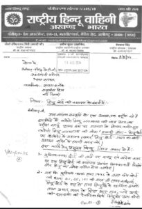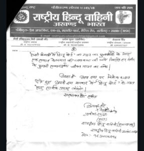 अलीगढ़:राष्ट्रीय हिंदू वाहिनी अखंड भारत के राष्ट्रीय समन्वय प्रवीण गुप्ता द्वारा