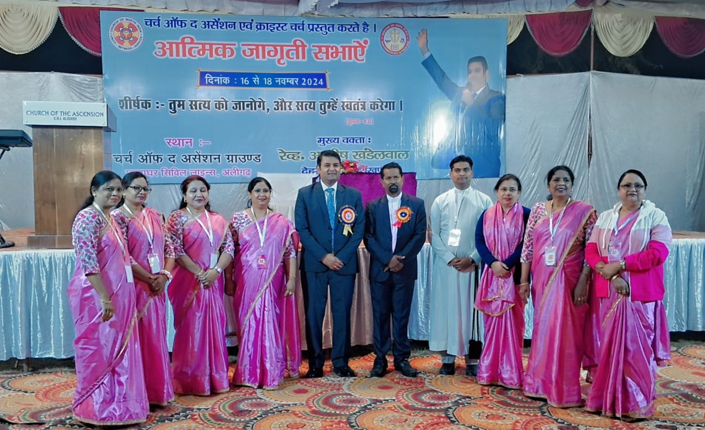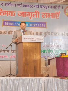अलीगढ:16 से 18 नवंबर तक सी एन आई चर्च एसेंशन अलीगढ पर प्रत्येक वर्ष होने बाले त्रिदिवसीय आत्मिक सभा का आयोजन किया गया जिसका आज समापन हुआ जिसमे देहरादून से आये मुख्य अथिति के रूप मे पास्टर आशीष खंडेलवाल उपस्थित रहे उन्होंने आत्मिक सभा के संबोधन में कहा की मनुष्य एक बार झूठ बोल सकता है लेकिन परमेश्वर आत्मा है और आत्माएं सच्ची होती हैं इसलिए परमेश्वर कभी झूठ नहीं बोलता हम सभी को यीशु मसीह के वचन के अनुसार अपने आप को चलाना चाहिए हम सभी उसको याद करे वही हमारा खुदा है।