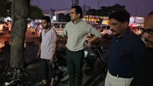 नाले के कटान के कारण दुकान में भरे पानी को देखने पहुँचे नगर आयुक्त-युद्ध स्तर पर दुकान के बेसमेन्ट से नगर निगम करा रहा जलनिकासी
